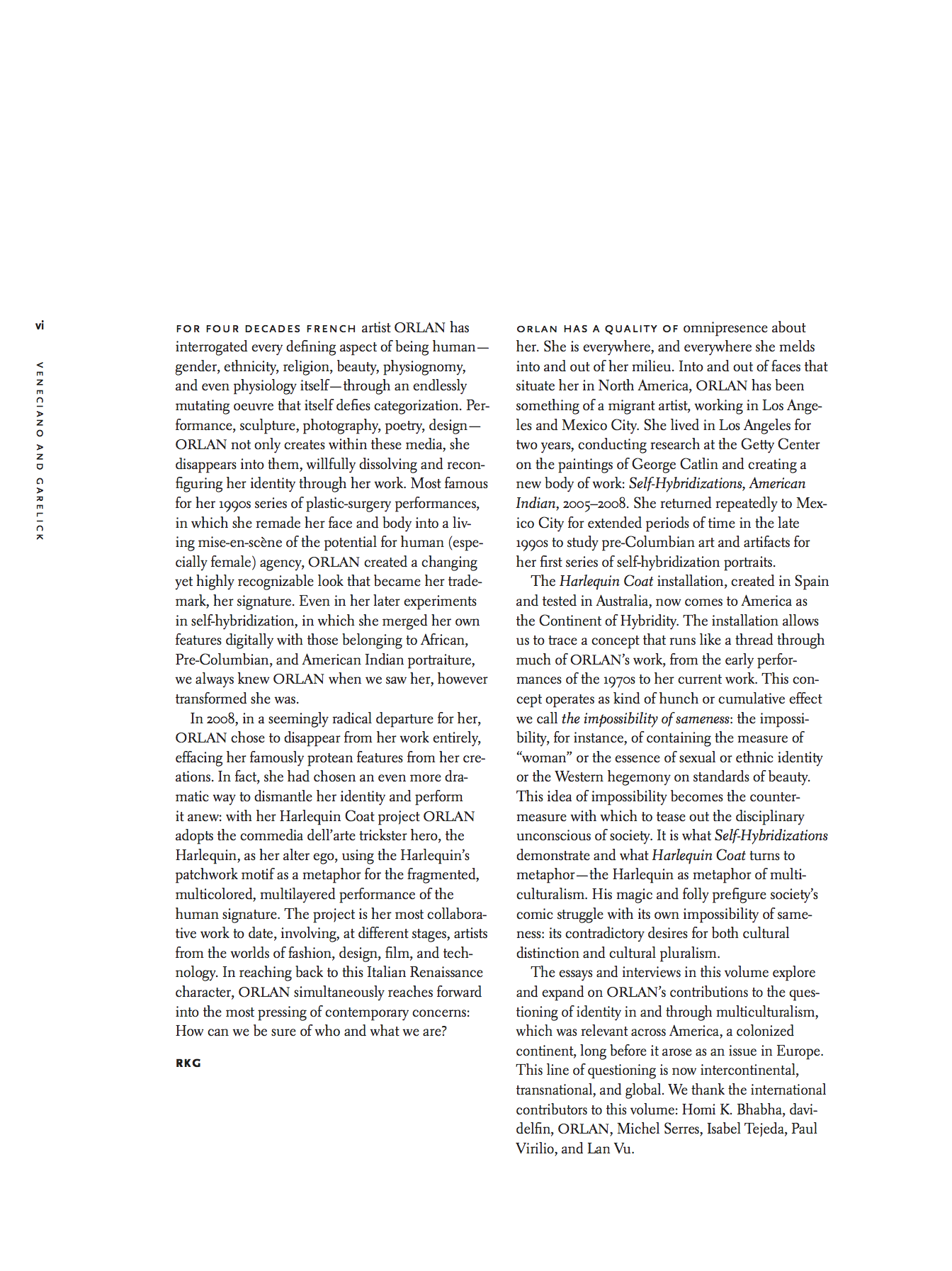 Fabulous Harlequin: ORLAN and the Patchwork Self. Lincoln: UNL Press, 2011.