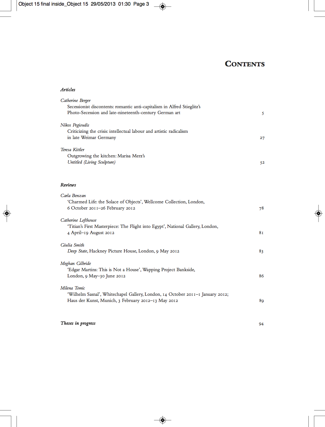 OBJECT: Graduate Research and Reviews in the History of Art and Visual Culture 15 (2013).